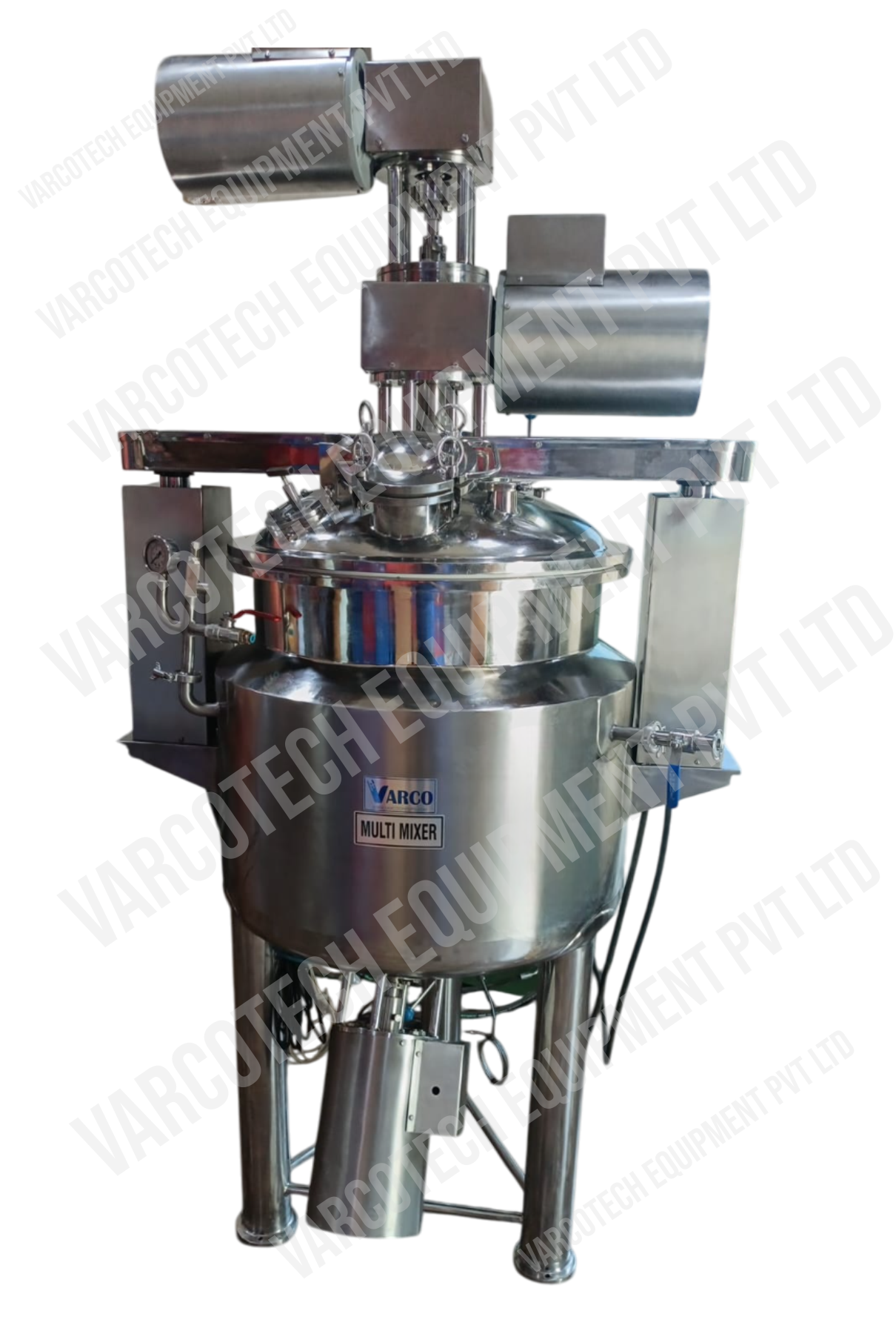 The principle of contra-rotation of blades is employed in the Contra Mixer to enable simultaneous beating and scraping operations. It is primarily used for the manufacturing of toothpaste, creams, cosmetics, and other viscous products.
